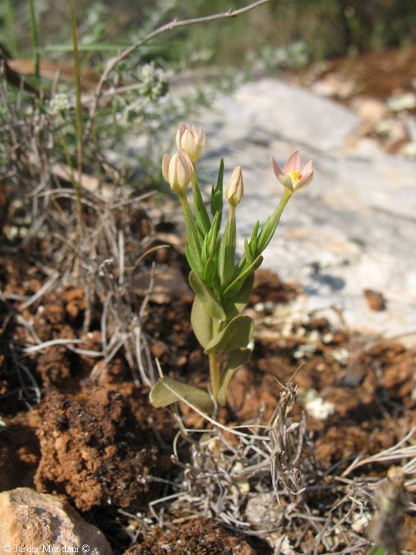 Variety roseum with a delicate pink tone, by the silencing of the yellow gene and predominance of the pink gene of the ancestor Centaurium tenuiflorum subsp. acutiflorum.